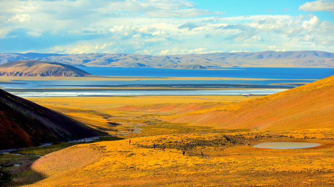 太阳此刻升得更高了,阳光在水中变幻出奇异的光彩
